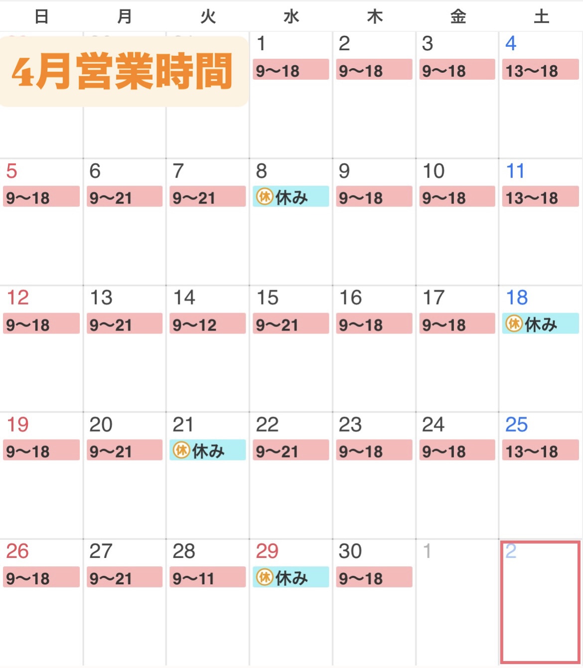 4月営業時間