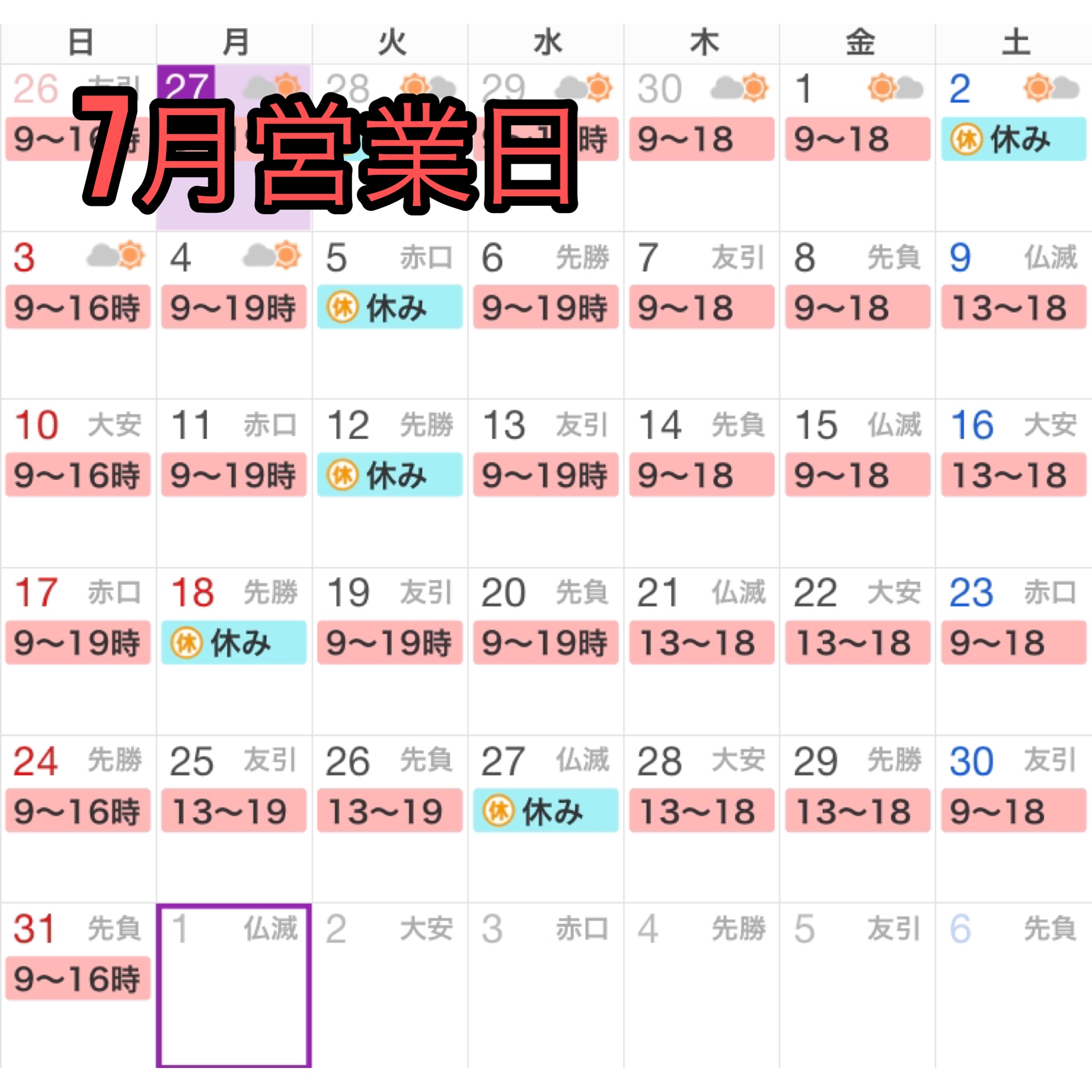 7月営業日